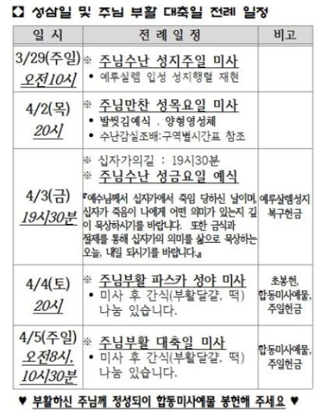 성삼일 및 주님 부활 대축일 전례 일정