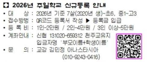 2026년 주일학교 신규등록 안내