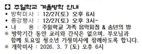 주일학교 겨울방학 안내