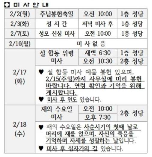 2월 미사 안내